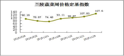 本周,兰陵蔬菜价格指数(11.23—11.29)收于127.60点,比上周107.83点,环比上升18.33%。